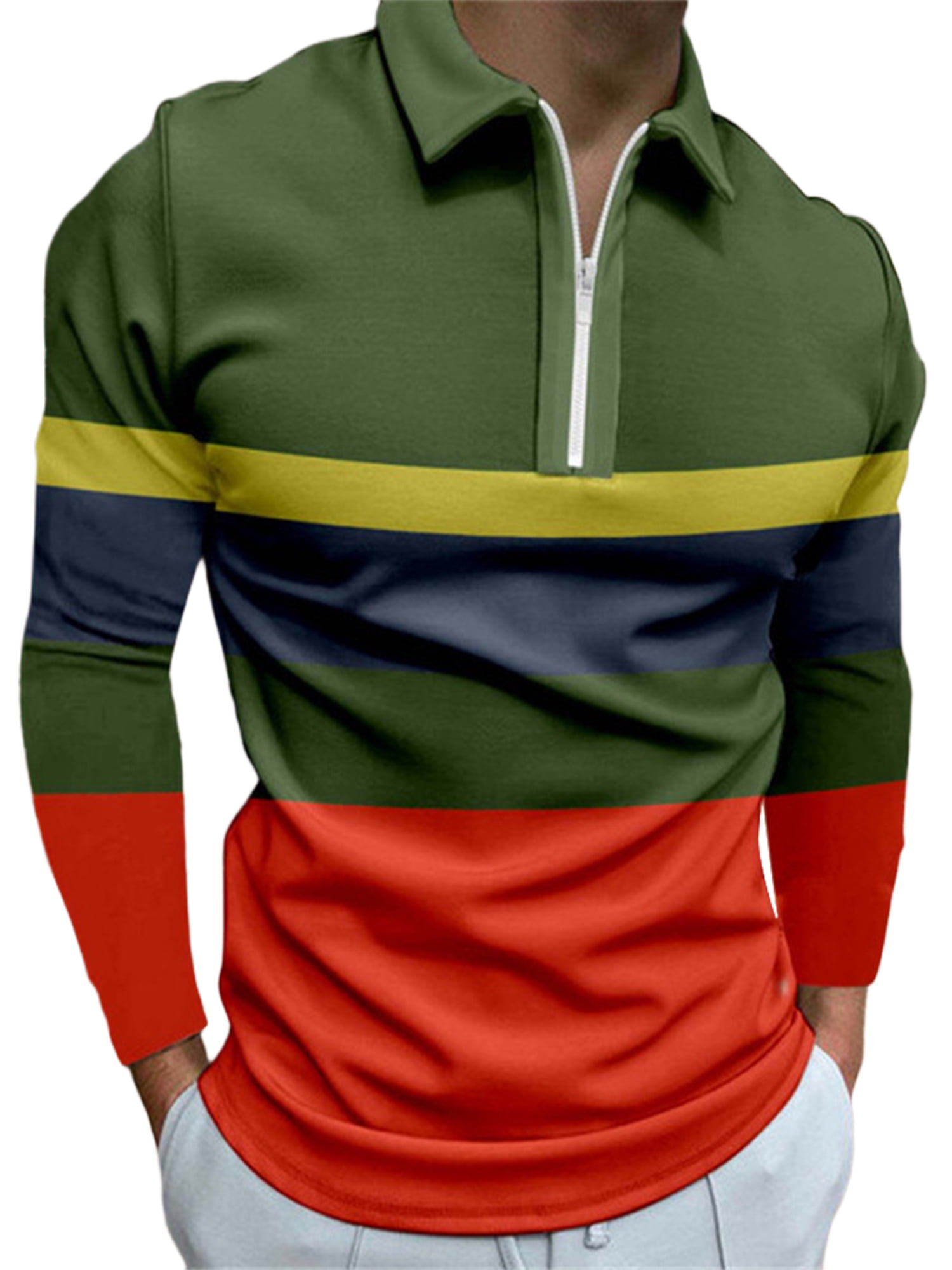 Colisha Mens Tops Lapel Neck T Shirts Zipper Polo Shirt Casual Beach Long Sleeve T Shirt Green Xl Walmart Com